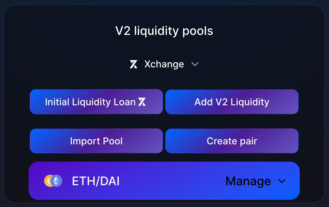 Each Xchange liquidity pool is a trading venue for a pair of ERC20 tokens.